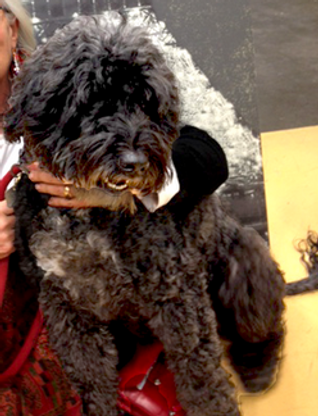 Our Therapy Dog JINX, a Portuguese Water Dog, loves to be petted!
